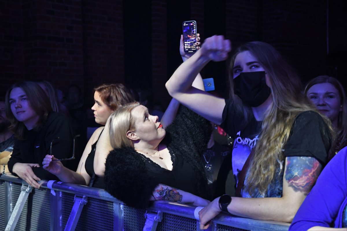 ”Haluan kiittää teitä kaikkia, että olette tulleet katsomaan tätä elävän musiikin konserttia, kiitos! Lämmin kiitos, että olette menneisyydessä, myös nyt, ostaneet lippuja näihin elävän musiikin konsertteihin. Konsertteihin, missä oikeat ihmiset soittavat oikeita instrumentteja ja oikeaa musiikkia oikeille ihmisille, kuten te. Tekemällä jatkossa juuri sen saman asian, voimme varmistaa sen, että teillä itsellänne, teidän lapsillanne ja jopa lapsenlapsillanne on tulevaisuudessa mahdollisuus nähdä bändejä lavalla. Nyt kun miettii puolitoista vuotta, että mitä kaikkea tässä on tapahtunut ja jäänyt kokematta, niin ei ole kauhean pitkä matka siitä, että menetettiin yksi sukupolvi ihmisiä, jotka kokevat tällaisia asioita juuri silloin, kun niitä täytyy kokea nuorena ensimmäisiä kertoja. Jumalauta, että on hienoa olla takaisin täällä lavalla!”