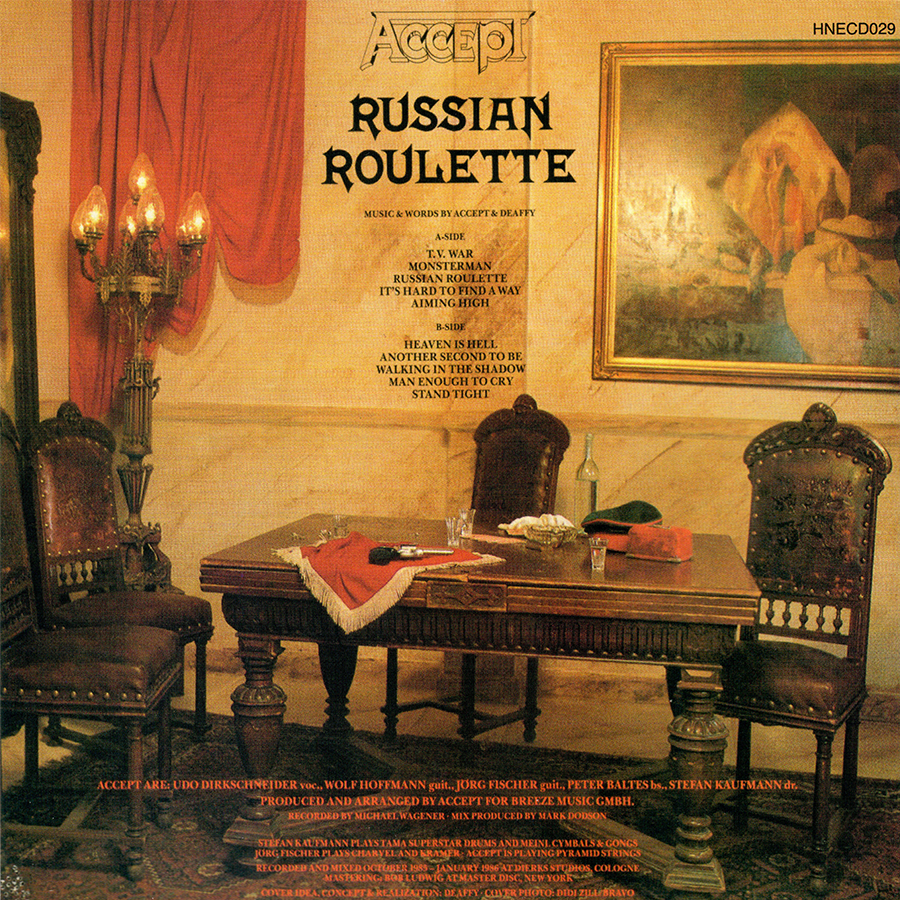 Accept oli luonut oman tunnistettavan soundinsa, jota se edelleen ylpeänä ”Russian Roulettella” noudatti. Kaikki oli kuten ennen ja joku voi puhua varman päälle pelaamisesta. Albumi ei missään nimessä ole huono, se vain on niin tutuksi tulleen kuuloinen, että siihen väkisin puutuu loppua kohden. Kenties jokin uusi toimintamalli tai erilainen tuottamuksellinen näkemys olisi tuonut LP:lle uusia sävyjä ja sitä kautta piristystä kuulijan korviin. Tämä näyttö ei tuntunut Udosta riittävältä ja mies päätti lähteä Acceptista kohti soolouraa ensimmäisen kerran tämän pitkäsoiton jälkeen. Tasan 40 vuotta sitten julkaistu ”Russian Roulette” merkitsi yhtyeelle tämän kautta yhden ajanjakson päättymistä.