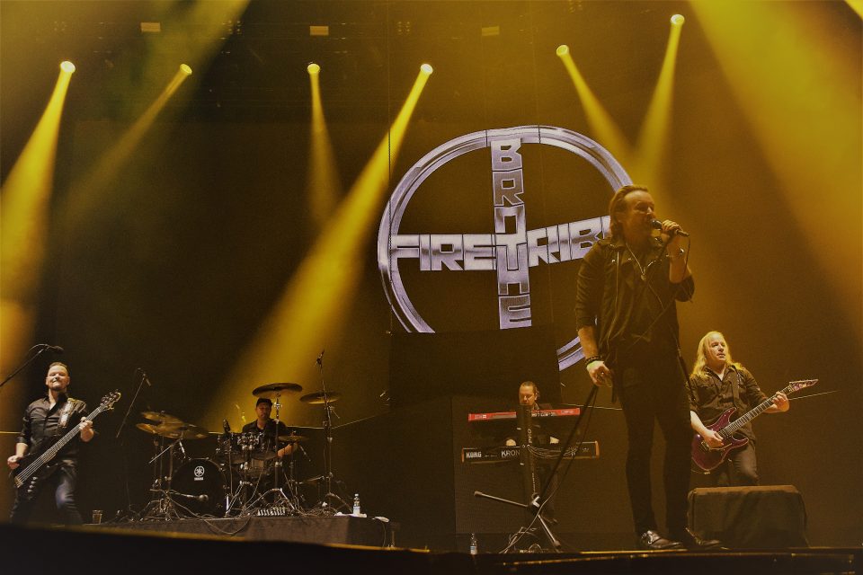 Noin kahdeksan aikaan tuttu tennispallottelu-intro alkoi kuulua PA-kamoista, mikä oli merkki siitä, että keväällä neljännen studioalbuminsa ”Sunbound” julkaissut Brother Firetribe oli valmiina aloittamaan illan musiikillisen annin. Tennispallottelua seurasi uuden levyn avauskolmikko ”Sunbound”-intro, ”Help Is On The Way” sekä ”Indelible Heroes”. Tässä vaiheessa jo varsin runsaslukuinen yleisö oli heti valmis syömään Veli Paloheimo-kvinteton kädestä. Bändin kuuden biisin setti keskittyi uuteen levyyn ja olisin kuunnellut mielelläni tätä settiä pitempäänkin, sillä sen verran hyvältä bändi kuulosti jokaisen jäsenen hoitaessa tonttinsa upeasti.
