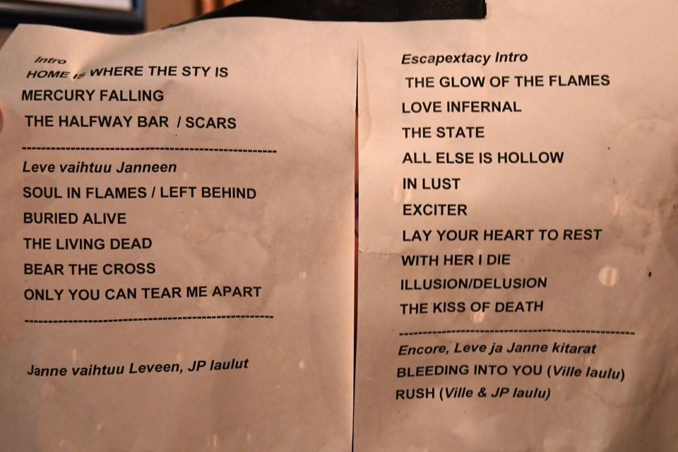Vielä oli tilaa parille encorelle. Ville Laihiala palasi yksin laulajan paikalle ja kuulimme harvinaisen, ainoastaan ”Lust Stained Despair” (2006) -albumin digipak-versiolta löytyvän ”Bleeding Into Youn”. Laihiala hieman hämmästeli mennyttä ratkaisua jättää kappale pitkäsoiton perusversiolta pois, sillä hän totesi, että ”on meillä paljon paskempia biisejä”.