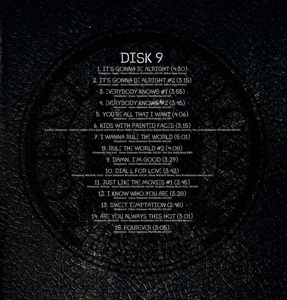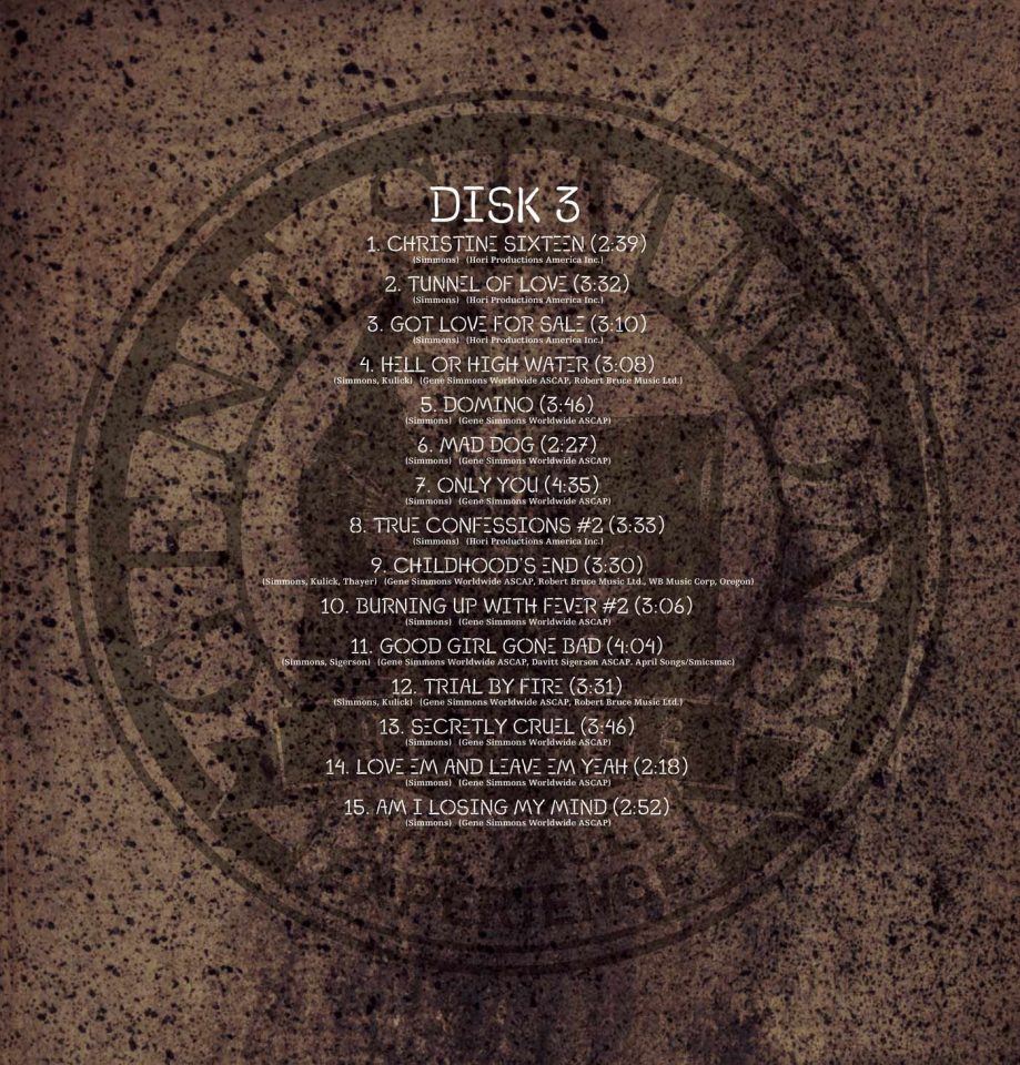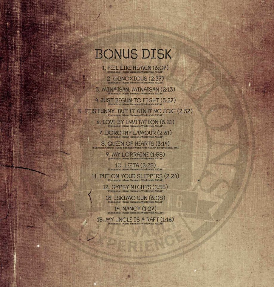 Kiss-veteraani Gene Simmons on paljastanut 11 levyä sisältävän massiivisen ”The Vault” boksinsa kappalelistan kokonaisuudessaan. Mukana on aiemmin ilmoitetun 10 levyn lisäksi bonus-CD, joka nostaa kappalemääräksi 166 Simmonsin tekemää aiemmin julkaisematonta biisiä vuosilta 1966-2016. Mukana on mm. Genen Van Halenin veljesten kanssa taltioimia vuoden 1977 demonauhoituksia, soolodemoja, Kiss-levyille päätyneitä klassikoita, mitali, action figuuri ja kirja, jossa runsaasti kuvia sekä Simmonsin tarinat kappaleiden takana.