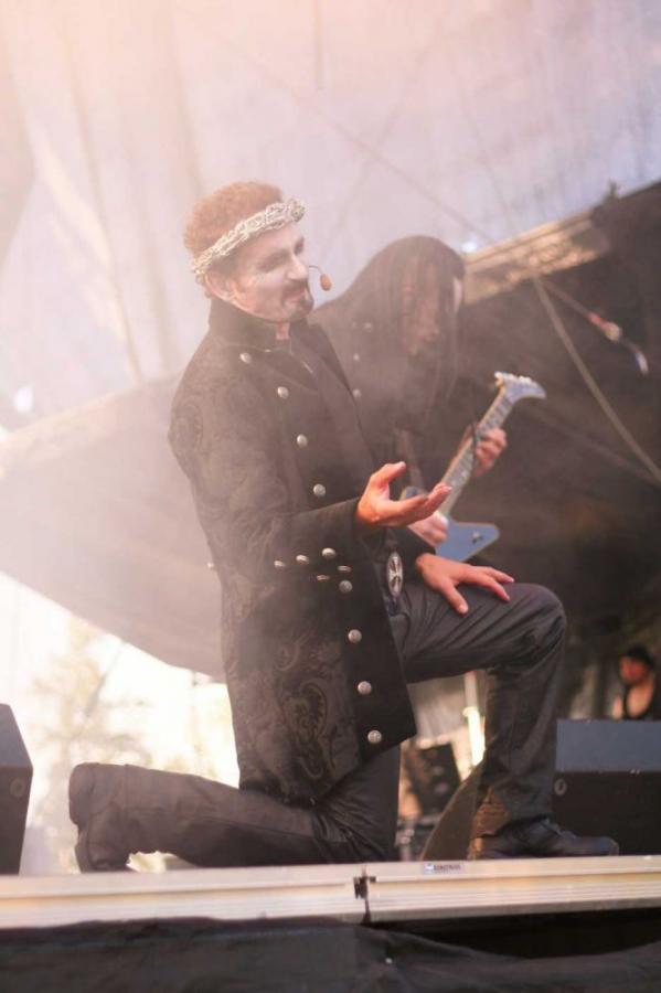 mainiossa iskussa ja saivat tässä vaiheessa jo kohtuullisen kokoiseksi kasvaneen yleisöjoukon piestyä varsin mainioon meininkiin. Sotajumalan vajaan tunnin mittaisen keikan jälkeen päälavalle kapusi monien odottama brittihevilegenda Hell. Päälavan eteen kerääntyi sankka joukko katsojia ja he saivatkin todistaa mainiota keikkaa, sillä sen verran kovassa iskussa Hell oli tarjoten päivänvalossakin yllättävän teatraalisen ja dramaattisen show’n. Vokalisti David Bower (tunnetaan myös nimellä David Beckford) otti yleisön hyppysiinsä kuten vankan kokemuksen näyttelijänä niin draamoissa kuin musikaaleissa omaavan miehen voi olettaakin ottavan. Mies lauloi todella hyvin ja erään herra Andy Sneapin riveissään sisältävä orkesteri oli liekeissä. Hell olikin yksi mielestäni viikonlopun kovimmista bändeistä.