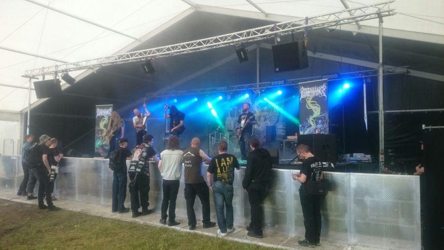 Telttalavan uumenista löytyi alttarinsa pystyttänyt Gloomy Grim. Ajankohta oli hieman haasteellinen ja keikka olisi ehkä toiminut paremmin sisälavalla. Vaikka laulaja Agathon yritti omalla esityksellään saada tunnelmaa paremmin kohdilleen, vastakaikua oli vaikea saada. Paikalla oli harvakseltaan yleisöä ja reaktioiden perusteella muutamia keikka tuskin edes kiinnosti. Omiin korviin esitys kuulosti erittäin hyvältä ja sopivan synkältä, mutta olosuhteet eivät välttämättä olleet yhtyeen puolella.
