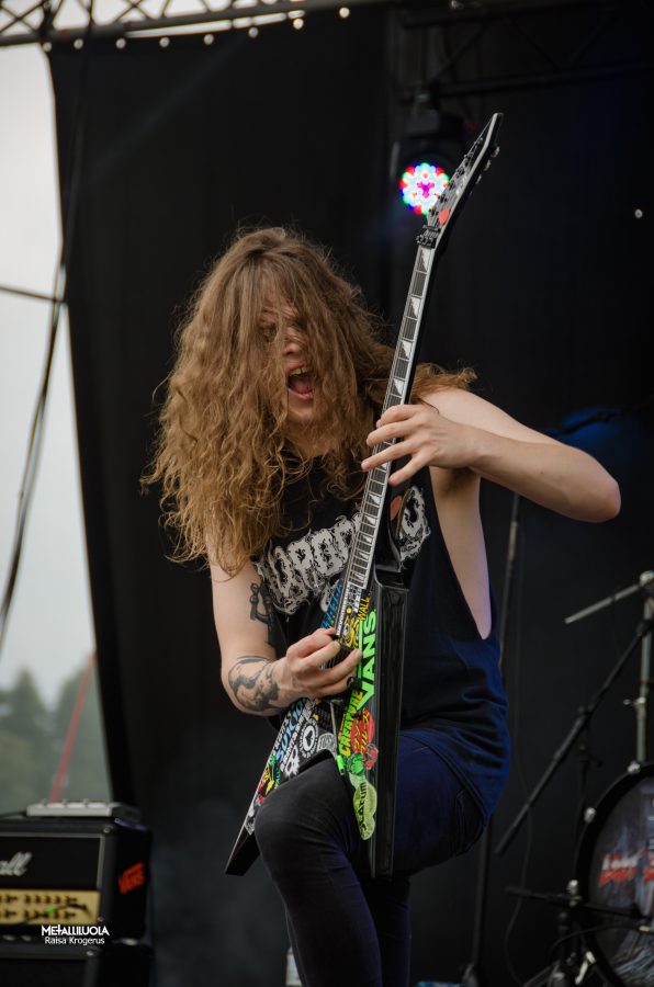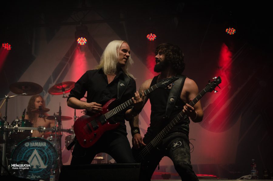 Battle Beast on aina yhtä ihana nähdä lavalla, vaikka tällä kertaa kesä, siitepölyt, työkiireet tai kaikki yhdessä olivat selvästi päässeet rasittamaan Noora Louhimon ääntä. Esitys oli yhtyeelle tyypilliseen tapaan energinen, nopeatempoinen ja täynnä hauskaa pikku kujeilua lavalla. Yleisö pui nyrkkiä Nooran esimerkkiä seuraten ja lauloi mukana läpi keikan. “Sea Of Dreamsin” jälkeen seurasi perinteinen “powerdrinking” -hetki. En ole aivan varma, onko Pyry Vikin tavoitteena juoda oluensa rumpujen takana nopeammin vai samaa tahtia, kun Eero Sipilä juottaa oluen Janne Björkrothille. Jos joku tietää, niin kertokaa ihmeessä.