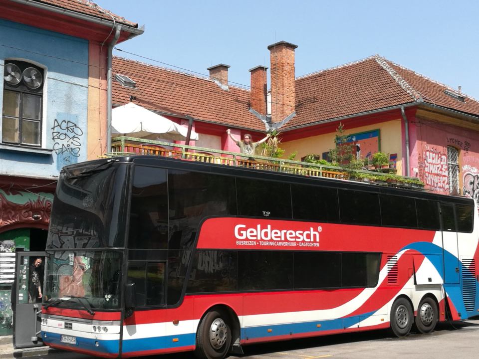 Havaihduin siihen että bussi on ollut pitkään liikkumatta ja sisällä alkaa olla kuuma. Jahas, ollaankin vissiin jo kohteessa. Keikkapaikka on vapaakaupunki Metelkovassa mistä kertoo jo se että pilvi haisee joka puolella vaikka ei olla paljoa puolenpäivän tuolla puolen. Paikan henkilökunta tuntuu tykkäävän kovasti myös tuosta ganjasta mutta siitä huolimatta hommat hoituvat ilman turhaa säätöä.