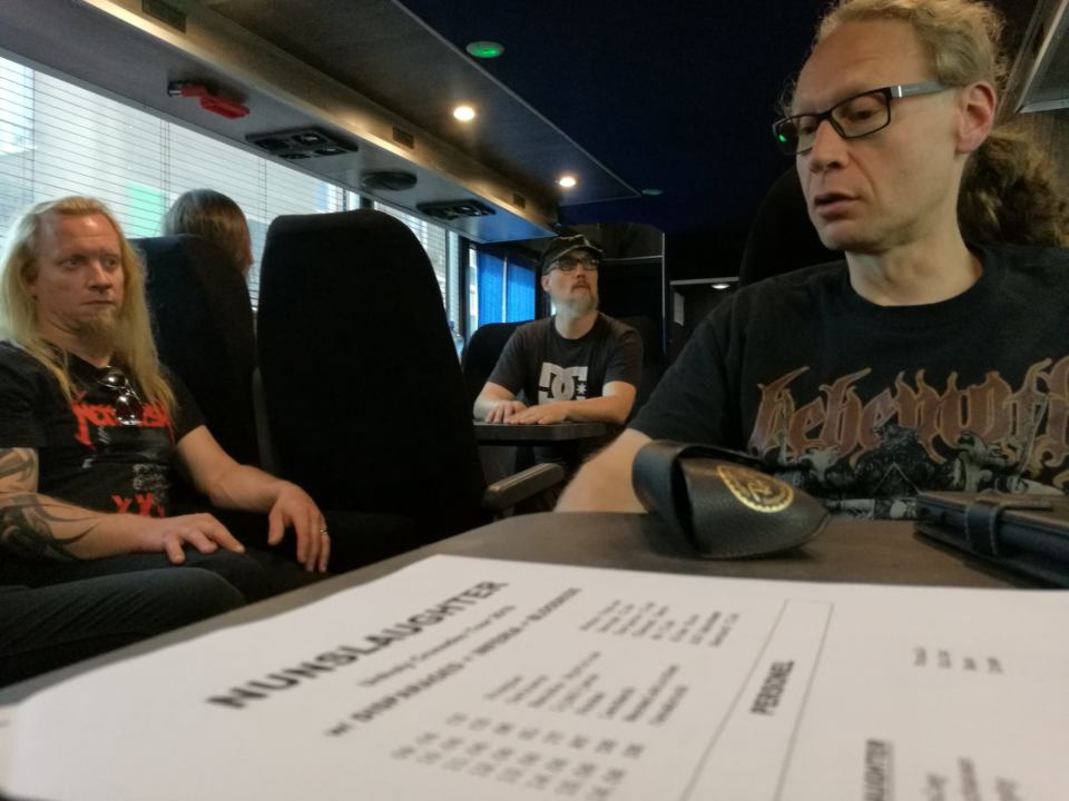 Paluulentoa odotellessa oli mukava vielä kerrata tapahtunutta. Yleensä rundeilla lämppärit ovat niin sanotusti koiran asemassa. Kanna, tee kaikki, syö jämät kun pääbändi on syönyt jne. Vaan ei tällä rundilla: kaikki olivat täysin tasa-arvoisia, samat oikeudet ja velvollisuudet sekä takahuonetilat. Ei mitään starailua, ei draamaa, ei riitaa, ei kyräilyä. Yhteishenki oli lämmin ja iloinen. Enemmän kiertueita tehneetkin olivat ihmeissään kuinka vaivattomasti ja hyvällä meiningillä kaikki nämä 23 ihmistä pystyivät elämään viikon verran samassa bussissa.