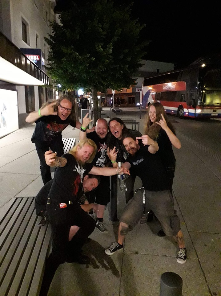 Keikka sujui tutulla rutiinilla ja hyvällä meiningillä vaikka kieltämättä pieni kiertueväsymys alkoi jo tuntumaan kehossa. Keikkojen jälkeen paikan henkilökunta ja muut laittoivat vielä pystyyn melkoiset bileet. Hyvästä meiningistä huolimatta väsymys vei tämän miehen ja oma sarcogafi kutsui reilusti ennen bus callia.