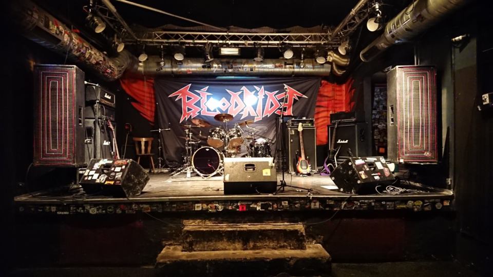 Jos edellinen keikkapaikka oli kuuma niin nyt oli homma erittäin hot. Kyseinen klubi sijaitsi hämmentävästi ison kerrostalon ylimmissä kerroksissa joten jo päivän peruslämpö oli sisällä jossain 40 asteen hujakoilla. Jo kamoja kantaessa ja lavalle asentaessa joka ukko hikoili varmasti litran tai pari. Bäkkärin jääkaappi oli onneksi valmiiksi ladattu erinäisillä virvokkeilla joten janoon ei kuoltu.