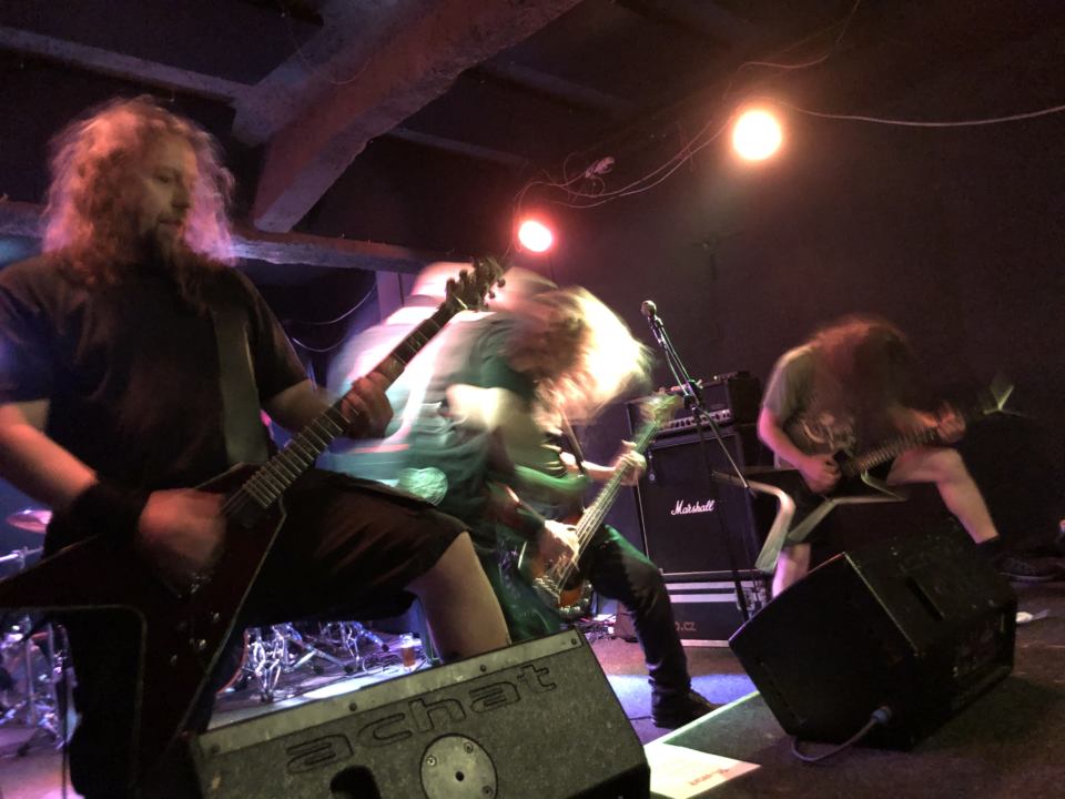 Tämä oli myös ensimmäinen keikka minkä Nunslaughter soitti ilman basistia. Oli ollut puhetta että muista bändeistä tulisi lavalle varabasisteja mutta he päätyivät vetämään kuitenkin raa’asti triona. Äänivelho Florianin johdolla miehet rakensivat bassokamoihin systeemin jolla kitaristi Noah ikään kuin soitti bassoa samalla kitarasignaalilla. Hyvin toimi. Jotkut ne osaa.