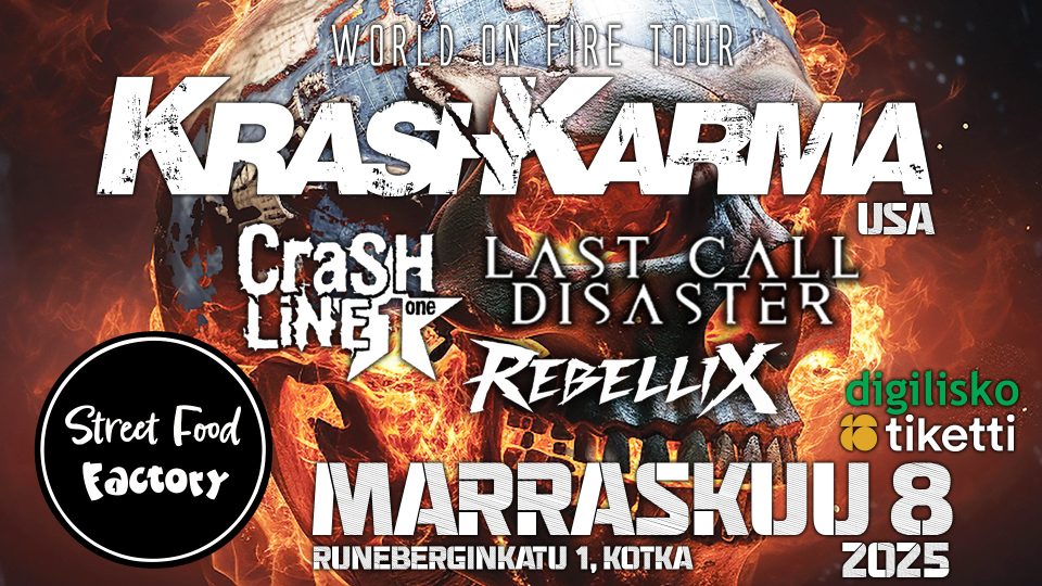 Krashkarma saapuu Suomeen. Vierailu on osa yhtyeen ”World on Fire” -maailmankiertuetta.