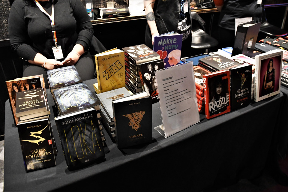 Kirjatarjonta oli suhteellisen pieneksi ja intiimiksi tapahtumaksi kattava pöytien notkuessa kustantamo Liken julkaisemaa rock- ja metallikirjallisuutta.