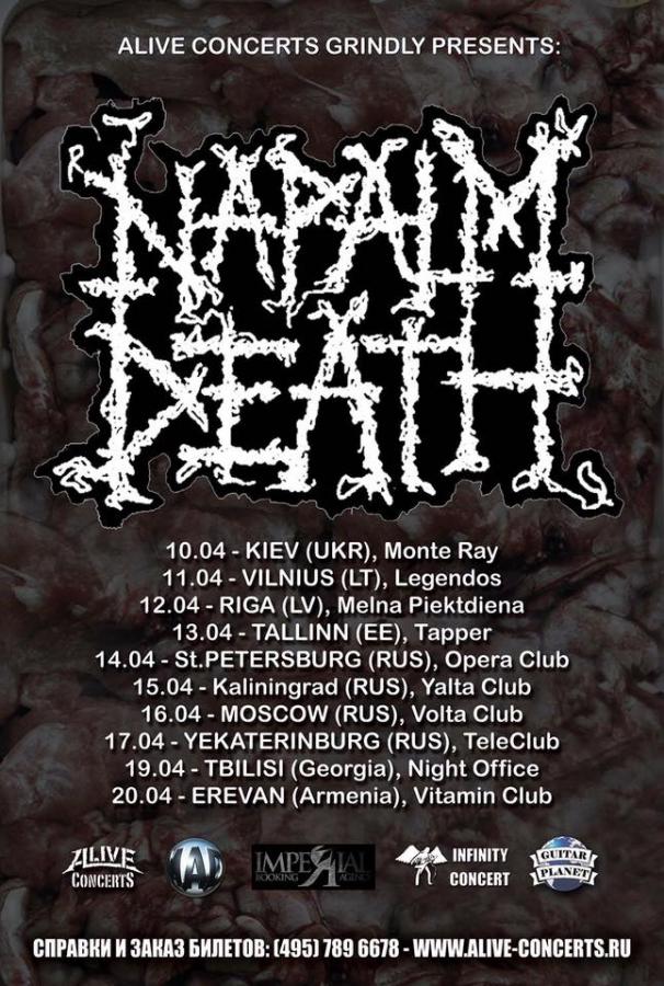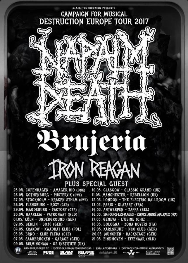 Suomeen asti klubikiertue ei ylettynyt, mutta yhtye saapuu Porispereen 5.8.2017. Tänään (13.4.2017) Napalm Death on mahdollista nähdä Tallinnassa, Tapper clubilla.