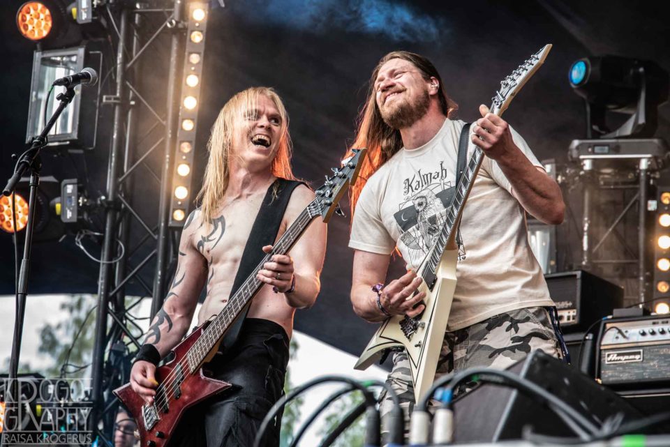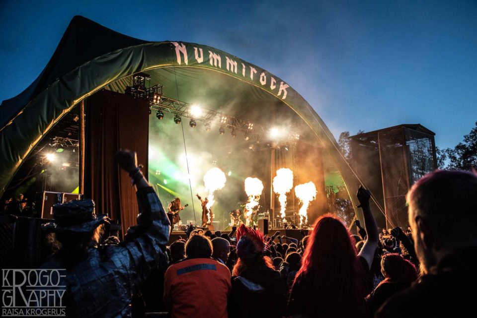 Lauantai oli selkeästi se mainstreamimpi päivä ja hevimaailmaa järkyttäneestä suru-uutisesta huolimatta sateen loputtua sen aloitti hilpeissä tunnelmissa Hevisaurus, jota katsomassa oli eniten yleisöä tähän mennessä festareita. En ole bändin kohdeyleisöä, mutta laadukasta tavaraa liskopoppoo on aina tehnyt, ja katsojiin upposi. Nummirockissa käydään nuorella iällä. Paikalla oli arviolta 5-vuotiaita faneja, jotka ovat käyneet täällä useammin kuin kirjoittaja.