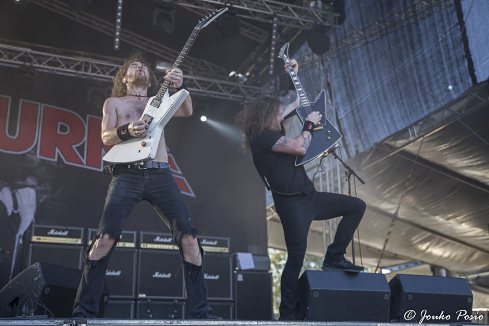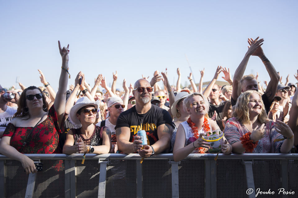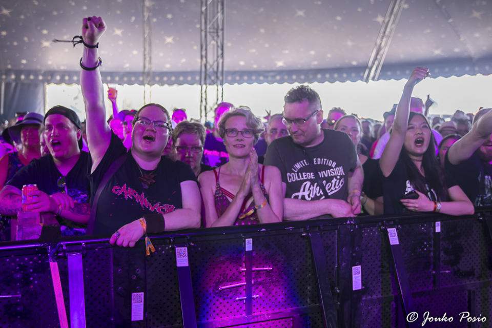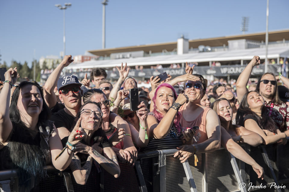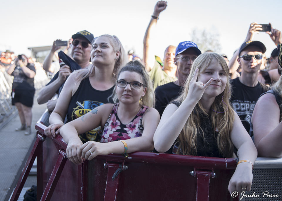 Festivaalin kakkoslavalla esiintynyt huimassa nosteessa oleva Beast In Black keräsi paikalle suuren määrän yleisöä, mutta itselleni bändi ei iske lainkaan. Biisit ovat kieltämättä tarttuvia, mutta makuuni E-Type -henkiset melodiat ovat niin kaukana metallista, kuin olla ja voi. Ei vaan tipu. Minulle metalli rumempana ja ilkeämpänä, kiitos.