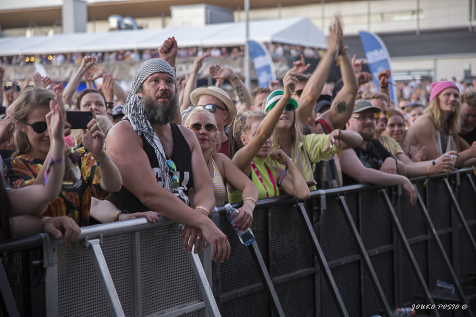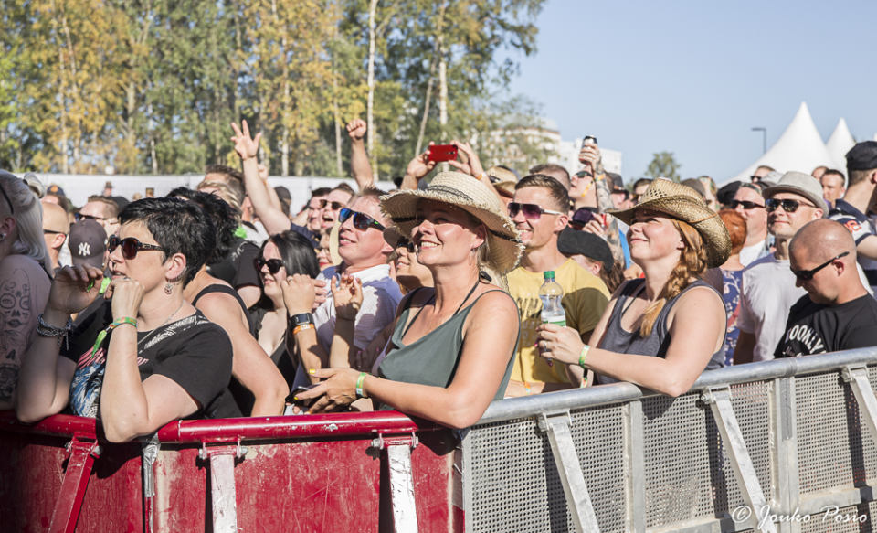 Turpaanvedon jälkeen suuntasin kohti päälavaa ja siellä esiintyvää suomirockin instituutiota Popedaa. Kesän keikoille torvisektiolla varustettu Ikurin Turbiini oli taatussa iskussa suomirock-hittien kajahtaessa komeasti auringossa kylpevän Qstock-kansan iloksi.