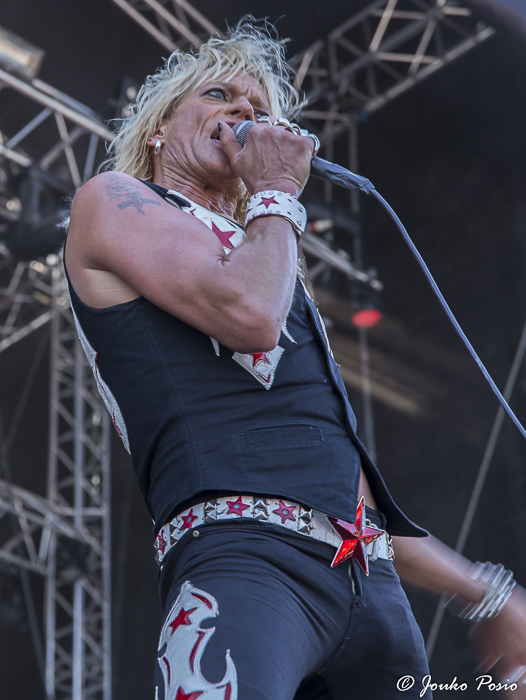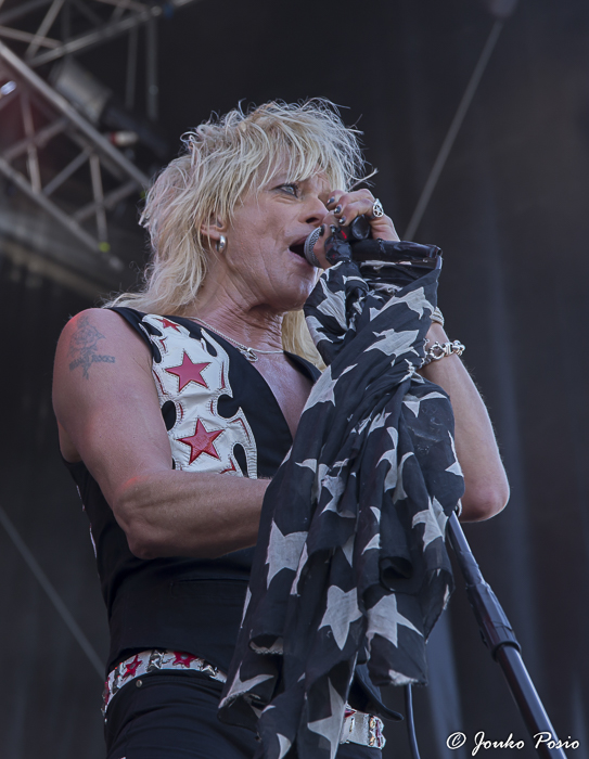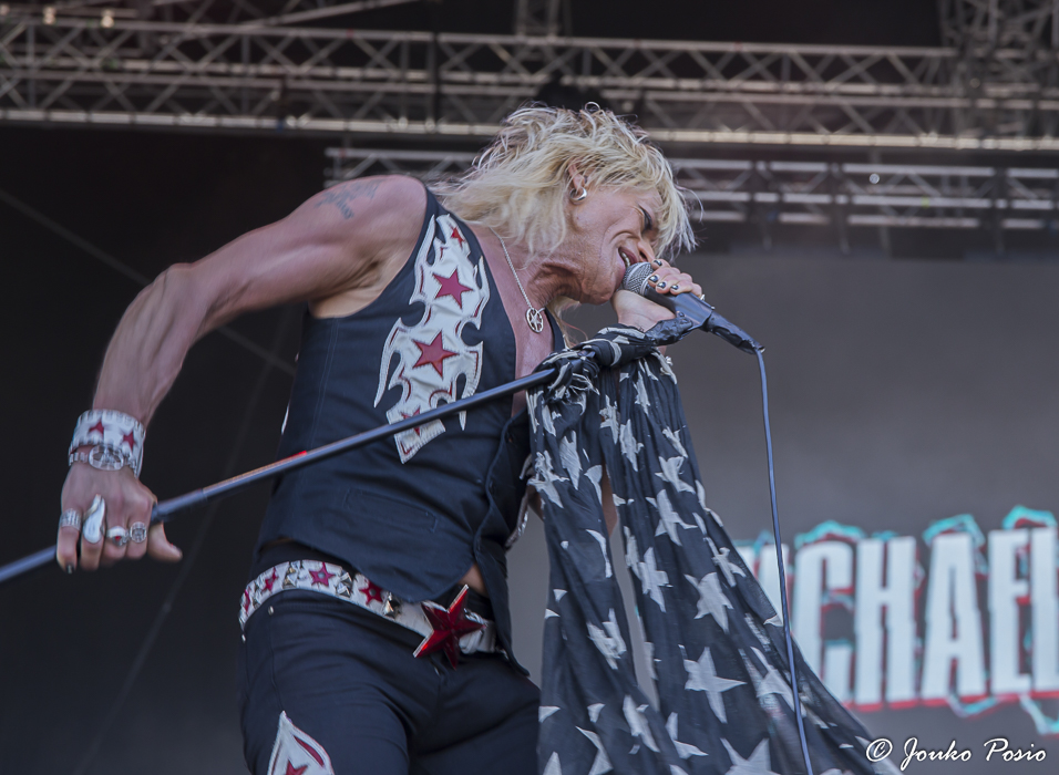 Suuntasin alueelle perjantaina hyvissä ajoin ennen päälavan klo 14.30 korkannutta Michael Monroeta. Mike bändeineen oli tuttuun tapaan pirteässä kunnossa, mutta yhtyeen setti lavamaneereineen alkaa jo toistaa itseään. Omaan makuuni iskivät parhaiten vanhat Hanoi Rocks -klassikot ”Don’t You Ever Leave Me” sekä ”Motorvatin’”.