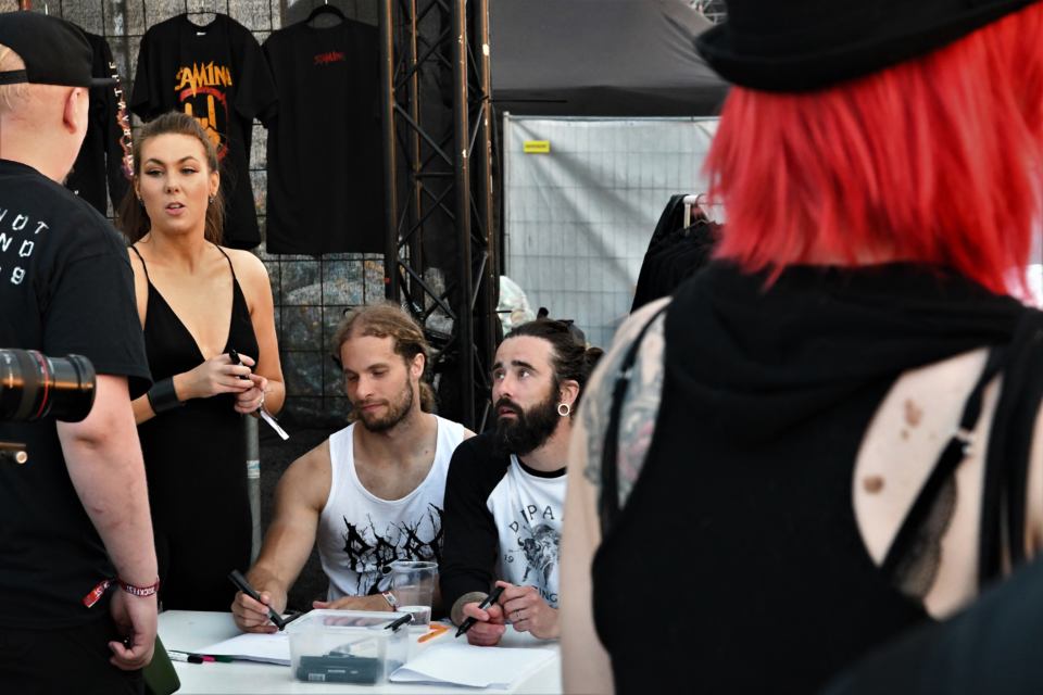 Merchandise-pisteen vieressä olleen pöydän ääressä kävi kuhina ja nimikirjoitusten metsästäjiä näissä tilaisuuksissa riitti pitkiksi jonoksi asti. Kansainvälisistä vieraista nimmareita kävivät jakamassa ruotsalaiset Amaranthe ja In Flames sekä hollantilainen Within Temptation.