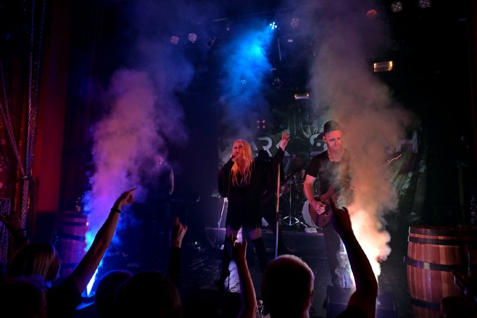 Dark Sarahin keikka alkoi vain puoli tuntia ovien avautumisen jälkeen, mutta onneksi paikalle oli löytänyt mukavasti yleisöä. “Attack Of Orym” löi keikalle raskaat alkutahdit ja uusi kosketinsoittaja Lindström lauloi kappaleessa Epicasta ja After Foreverista tutun Mark Jansenin alun perin esittämät örinäosuudet. Savukone tehosti tunnelmaa.