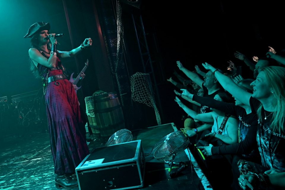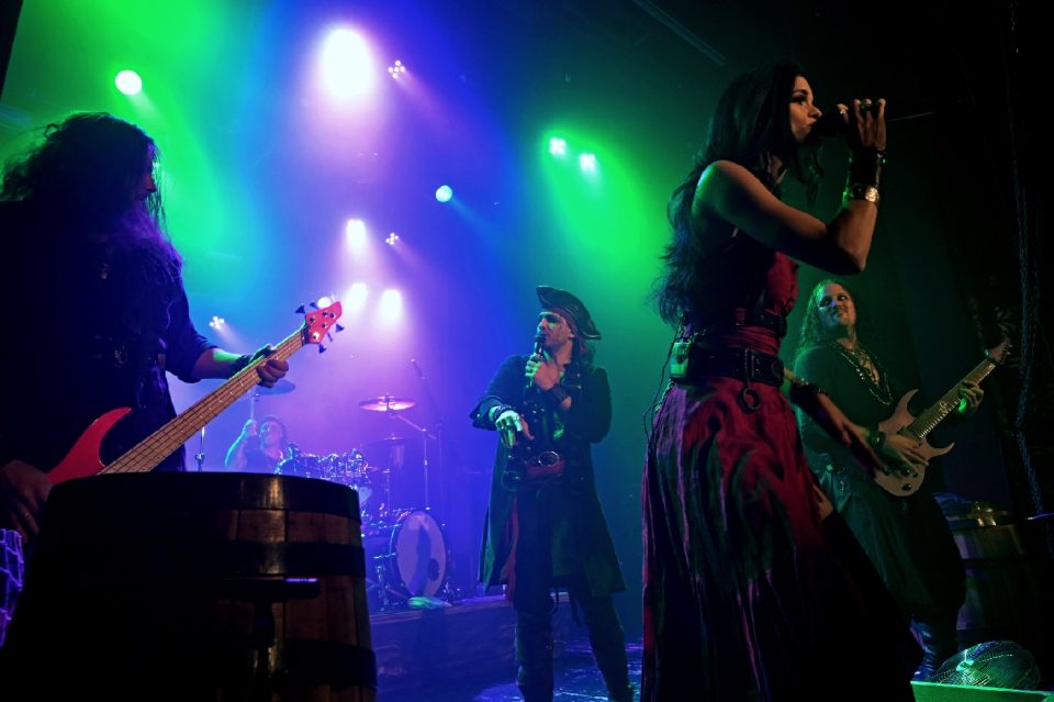 Lukuisin tynnyrein ja verkoin koristeltu lava oli näyttävä ja mukaili merirosvolaivan tunnelmaa. Yhtye oli panostanut myös pukeutumiseensa ja on hienoa nähdä, kuinka merirosvoteeman kanssa ollaan tosissaan.