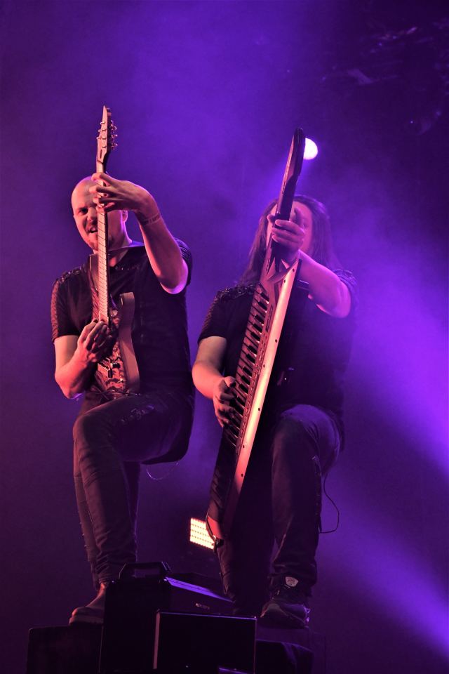 Yhtye hoiti välispiikit tuttavallisesti kotimaisella kielellä ja show’ssa oli mukana samat tutut elementit kuin aiemmin, eli kosketinsoittaja Janne Björkrothin sähkörummut, gin & tonic -drinkkien valmistukset ja näyttävät pyrot höystettynä Louhimon erilaisilla ilma-akrobatioilla useampaan otteeseen.