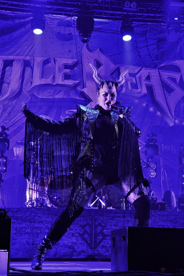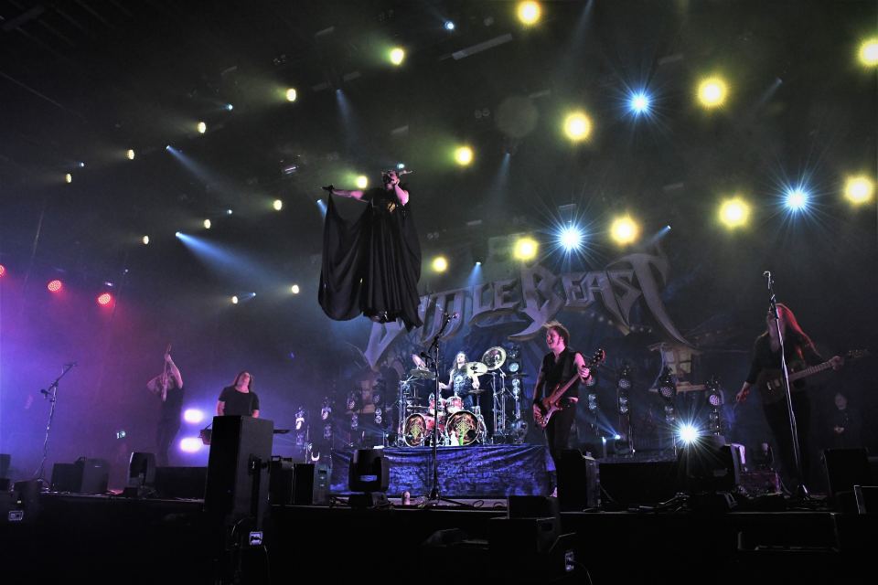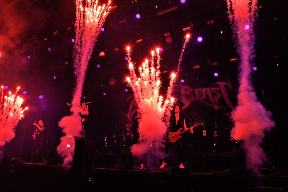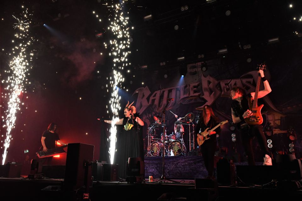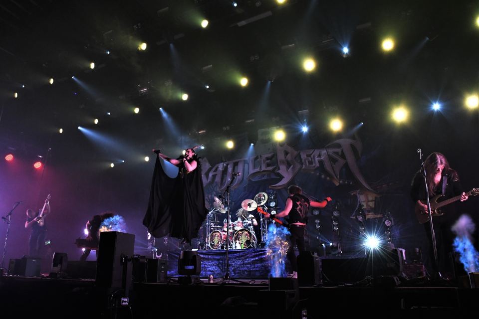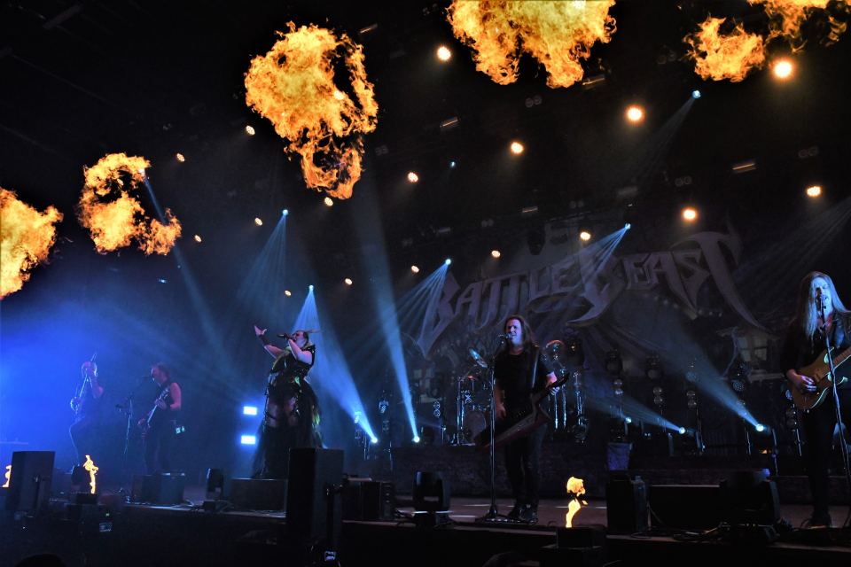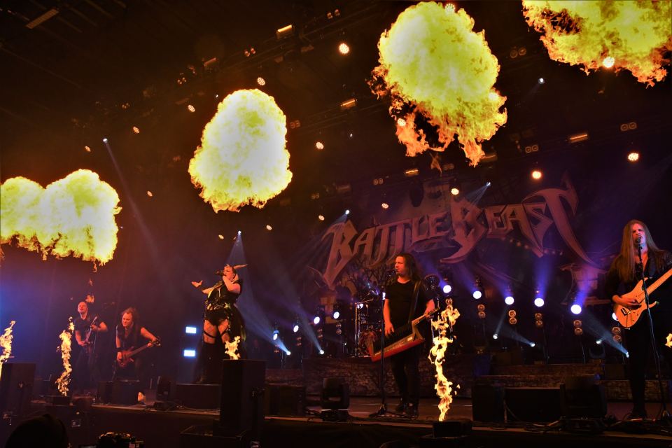 Viimein koitti hetki, jota oli odotettu jo noin vuoden verran. Battle Beast tempaisi toistaiseksi suurimman show’nsa käyntiin Noora Louhimon laskeuduttua hallin katosta liekkimeren keskelle. Esiintymisestä ei tunnetta puuttunut, sillä tunteet olivat pinnassa useammalla jäsenellä jo muutaman soitetun kappaleen jälkeen.