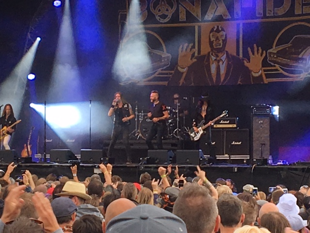 Lisää länsinaapurimme parhaimmistoa oli tarjolla seuraavaksi kun Bonafide käynnisti homman Sweden Stagen osalta. Yhtyeen vahvasti AC/DC-vaikutteinen poljento upposi varmasti yleisöön ja lavalla nähtiin loppuvaiheessa vieraita kun Mustaschin vokalisti Ralf Gyllenhammar teki onnistuneen suorituksen. Mies villitsi faneja hyvällä otteella laulaen Björn Skifs-coverin ”Michelangelo.” Heti perään kuultu setin päätös ja Sweden Rockille sävelletty ”Fill Your Head With Rock” sai yleisöön lisää liikettä. Päätöskappale toimi hienosti ja Bonafide jätti kaiken kaikkiaan hyvän jälkimaun hard rock-esityksestään.