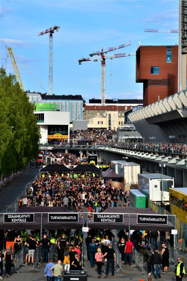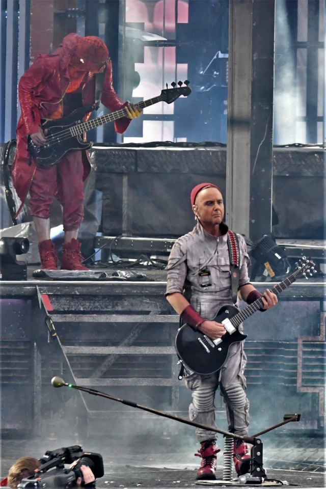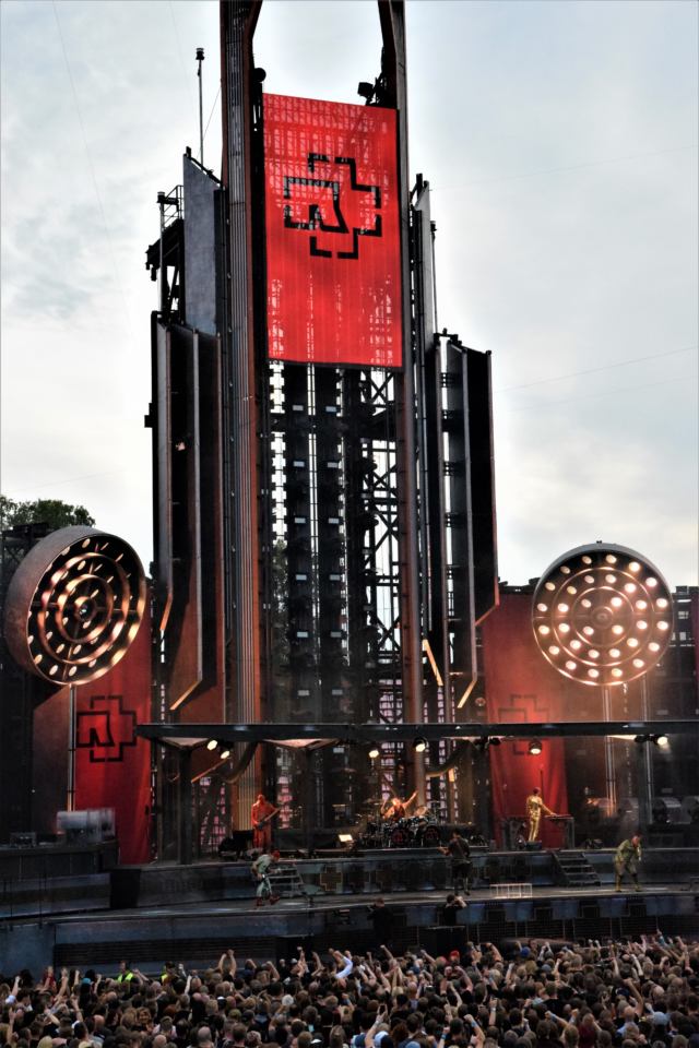 Tampereen stadionin päätyyn rakennettu valtava teräsmonumentti heräsi eloon täsmälleen aikataulussa klo 20.30 ja valtaisan räjähdyksen jälkeen ”Was Ich Liebe” käynnisti keikan tyylikkäästi hieman illan fiilistä tunnustellen. Kakkosena kuultu ”Links 2-3-4” räjäytti potin ja katsomossa nyrkit nousivat ilmaan perimmäisiä rivejä myöten. Tuoreimman, yksinkertaisesti ”Rammstein”-nimeä kantavan albumin kappaleita kuultiin illan aikana kahdeksan, joista omiksi suosikeikseni ovat nousseet livenä näyttävän lastenvaunujen polttamisen sisältänyt ”Puppe”, sekä sinkkuna julkaistu ja illan encore-osuuden avannut ”Ausländer”. Rammstein-tyyliin välispiikkejä ei keikalla kuultu, joten musiikki ja show puhuivat puolestaan. Soundit keikalla olivat aivan timanttiset ja ilmeisesti Tampereelta oli saatu väljät desibelirajat, sillä musiikki iski juuri niin kovaa ja tehokkaasti, kuin Rammsteinilta voi odottaa. Show oli illan pimetessä komeaa katsottavaa – pommit paukkuivat ja valtaisat liekit halkoivat ilmaa. Erityisesti ”Du Hastin” ja ”Sonnen” aikana nähdyt pyrot hakivat vertaistaan.