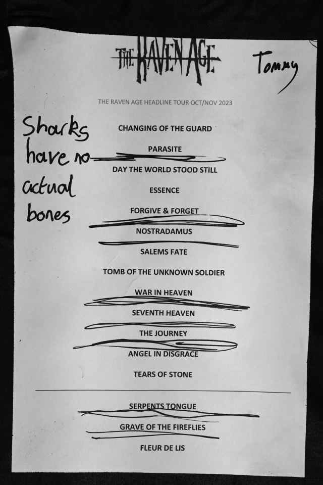 The Raven Agen rumpali Jai Patel kutsui keikan aikana lavalle suomalaisen fanin, joka pääsi onnellisena soittamaan hieman rumpuja sekä seuraamaan esiintymistä tovin ajaksi sivulta.