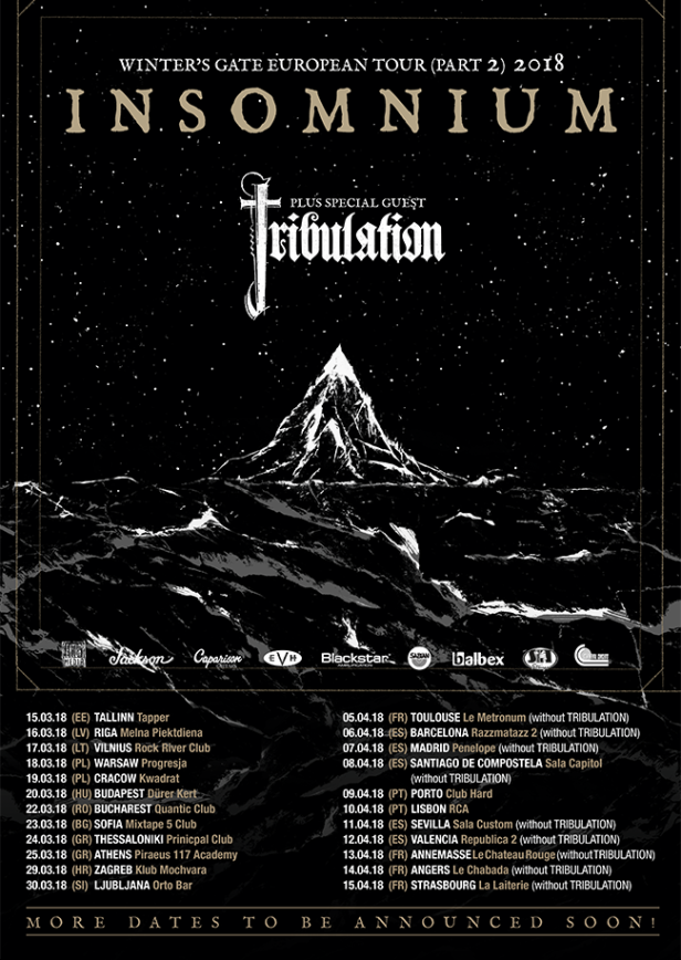 Tribulation kiertää Eurooppaa tammikuusta huhtikuulle 2018 Arch Enemyn ja Wintersunin sekä myöhemmin Insomniumin mukana. Kiertue ei saavu Suomeen, mutta yhtye nähdään muissa Pohjoismaissa tammi-helmikuussa ja Insomniumin kanssa Tallinnassa 15.3.2018.