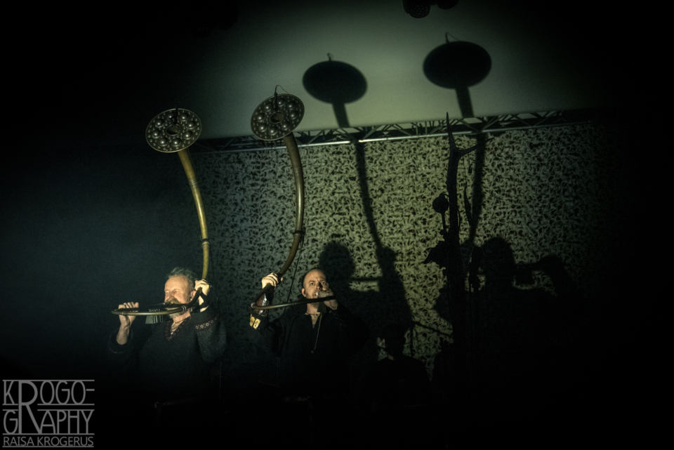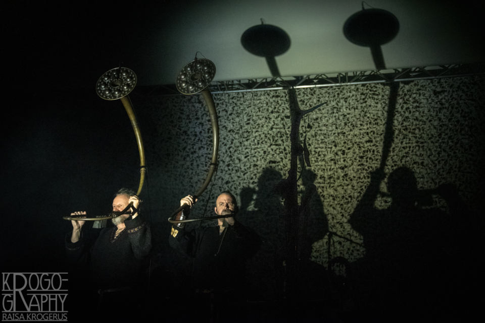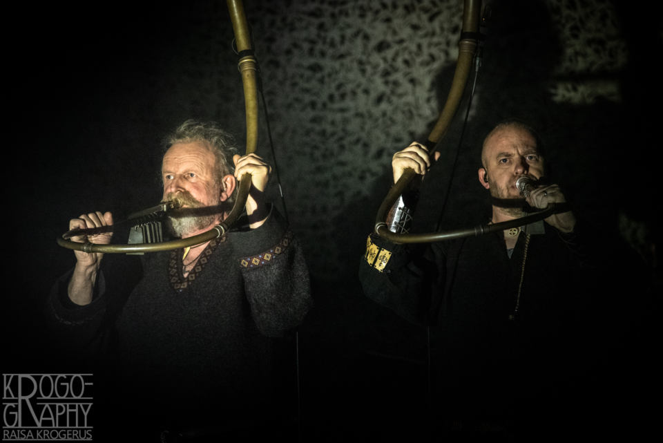Saapuessani Kulttuuritalolle piskuisessa marraskuun säässä, huomasin jo kaukaa ovien taakse kerääntyvän pitkän jonon monenkirjavaa, joviaalin oloista sakkia. Siinä vaiheessa heitä täytyi olla jo jokunen sata, jos en väärin laskenut. En ollut keikkapaikassa aiemmin käynyt, joten hipsin salin puolelle jo etujoukoissa tutkailemaan ja seuraamaan salin hidasta täyttymistä. Lavalla oli odottamassa käsittelijöitään, jos jonkinlaista pannua, torvea ja jousisoitinta sekä liuta erilaisia perinnesoittimia, joiden nimiä en edes lähde arvailemaan. Tunnelma oli salin valojen sammuessa ehtinyt nousta jo käsin kosketeltavan odottavaksi. Lopulta Wardrunan kaikkiaan yhdeksän henkeä käsittävä liverykmentti asteli lavalle ja polkaisi esityksensä käyntiin.