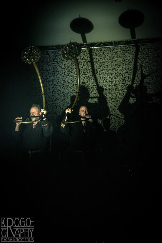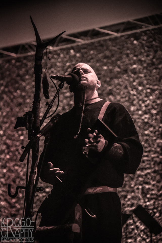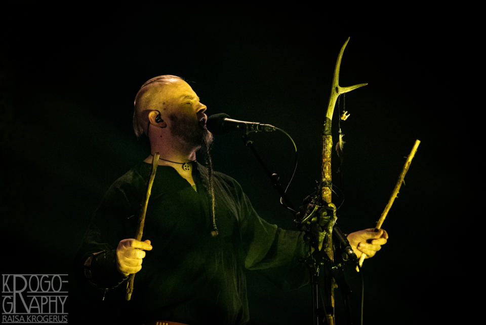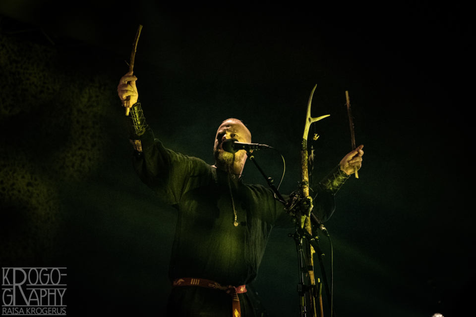 Tällä kertaa itselläni oli konsertin alkuun hitaampi syttyminen, varmasti osittain siksi, koska olin oman keikkaviikonloppuni jäljiltä hieman raukea. Kuitenkin jo muutaman kappaleen jälkeen alkoivat tutut kolmen vuoden takaiset kylmät väreet hiiviskellä ihokarvojani myöten. Pian jyhkeän musiikin resonoima energia oli imeytynyt ihon läpi verenkiertoon ja vaivuttanut minut jonkinasteiseen transsitilaan, joka jatkui lähestulkoon läpi koko esityksen. Aika menetti merkityksensä. Eteeni avautui vuoria, vuonoja, ukkosmyrskyjä, tähtitaivaita sekä tulien ympärillä tanssivia ihmishahmoja. Kaikkea sitä, mitä Wardrunan musiikki maalaa mieleen, ajattomalla ja universaalilla tavallaan.